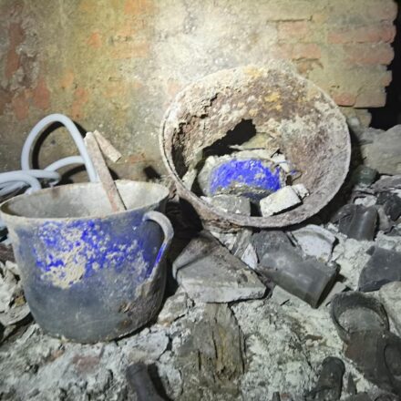 Als wir unten ankamen schoss mir eine Frage durch den Kopf. „Gibt es irgendeine wichtige Routine, bevor es in einen Keller geht?“ Mir wurde die Frage mit einer einfachen Antwort beantwortet. Jeder Keller wird ausgeleuchtet, bevor er betreten wird und es muss passende Kleidung, wie z.B: Sicherheitsschuhe getragen werden. So war es auch: Es waren Lampen montiert und dort, wo es nach wie vor zu dunkel war, wurde mit einer Taschenlampe ausgeleuchtet. Es führte also ein kleiner verstaubter Gang in den Keller hinein. Dort kam man als Erstes zu den sogenannte Not-Aborten (Toiletten), welche mit fluoreszierenden Schildern erkennbar gemacht wurden. Es war mehr oder weniger eine einfache Kabine mit einer Tonne darin, die etwas an ein Camping-Klo erinnerte. Diese Tonnen wurden für die Notbedürfnisse der Menschen verwendet und danach mit etwas ähnlichem wie Streu bedeckt, um den Gestank zu dämpfen. Von da aus ging es los einmal um die Ecke waren knapp 6 Meter hohe Hallen, die früher als Luftschutzkeller gedient haben. An den Decken gab es Luken die als Sauerstoffzufuhr fungiert haben. Ebenfalls kaum zu übersehen war der Notausgang mit einer langen Leiter, die bis an die Decke und oben hinaus reichte. Gekennzeichnet war er mit einem fluoreszierenden Notausgang-Schild. Man konnte an manchen Stellen an den Mauern sehen, dass sich in alten Zeiten einmal Wege in sie hinein erstreckt haben, jedoch wurden diese mit der Zeit einfach zugemauert. Sämtliche Artefakte, die in dem Keller gefunden wurden, lagen ebenfalls zur Schau, unter ihnen waren zum Beispiel alte Gaslampen oder Glasflaschen. Ein absolut empfehlenswerter Abstieg.